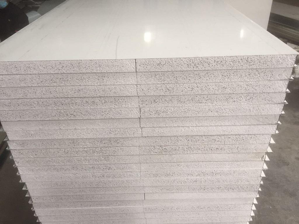硫氧鎂夾芯板充分發(fā)揮了硫氧鎂復(fù)合材料的獨特性能,在防火,防潮,防脫膠,高強度,保溫,隔熱,吸音等方面有著顯著地優(yōu)點及功效。 生產(chǎn)工...