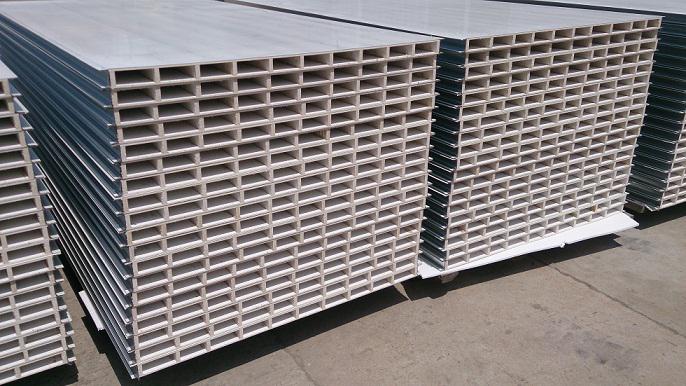 夾芯板是304/2b不銹鋼板為面材,自熄型聚苯乙烯、巖棉、聚氨脂、紙峰窩等為芯材,用熱固化膠在連續(xù)成型機內(nèi)熱加壓復(fù)合而成的超輕建筑板材。...
